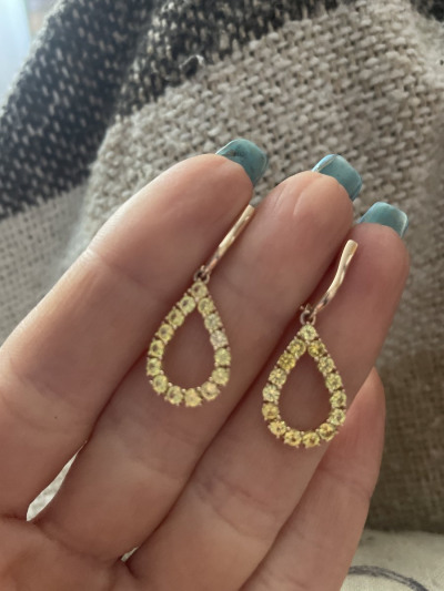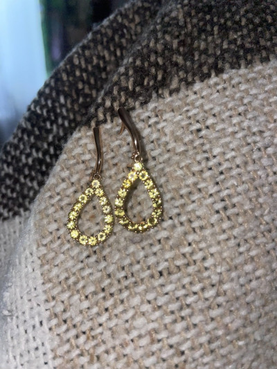 Это что-то нереальное. Очень похожи на жёлтые бриллианты. Рекомендую, светятся даже при комнатной освещении! Если есть возможность-покупайте. Жёлтых свпфиров не так много. И конечно очень удобная форма серег-нетяжелые, но заметные в форме капли.
