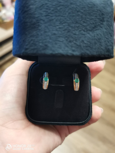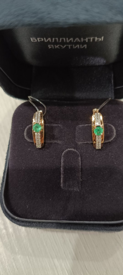 Золотые серьги с бриллиантами природными и изумрудами природными