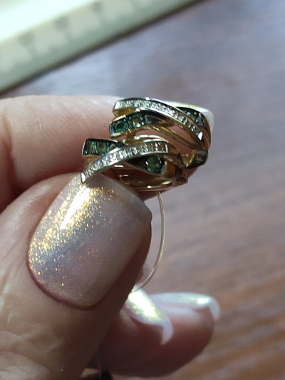 Золотые серьги с бриллиантами природными и изумрудами природными