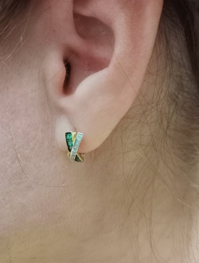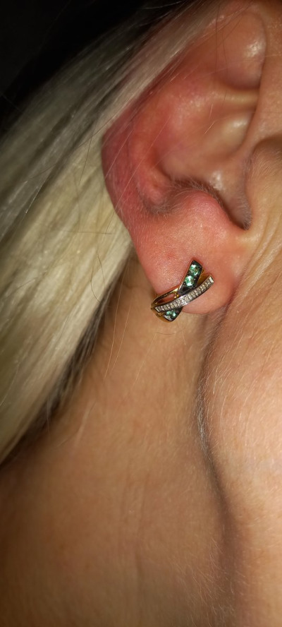 Симпатичные яркие, но очень маленькие серьги. Очень хорошо сидят на тонкой мочке но будут лучше смотреться на маленьком ушке. Купила в подарок надеюсь понравятся.
