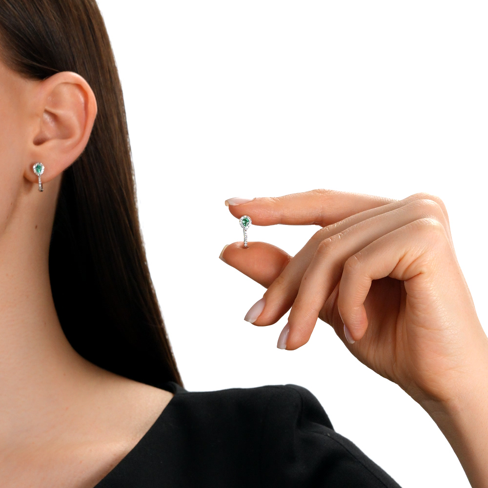 Золотые серьги с бриллиантами природными и изумрудами природными