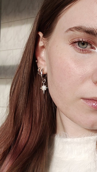 Серьги лёгкие, вместе с этим - очень красивые. Купила, чтобы носить постоянно: спать в них удобно, звёздочка не колется.