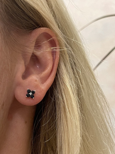 Серьги с 2 бриллиантами природными, 0.01 карат, огранка круг 57 граней, цвет 3, чистота 6, тип огранки А;