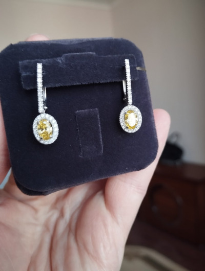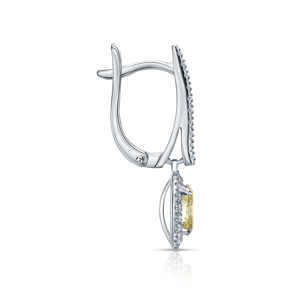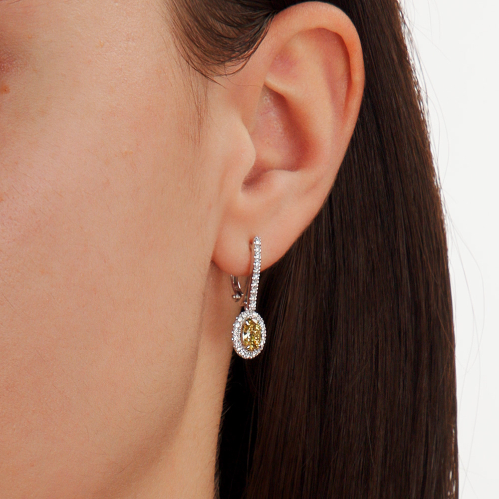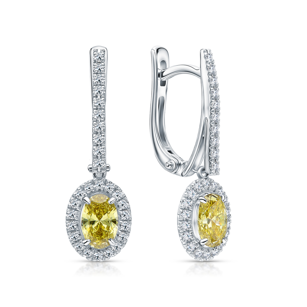 Серьги с 2 бриллиантами выращенными, 0.96 карат, огранка овал 57 граней, цвет Желтый, чистота 5, тип огранки А;