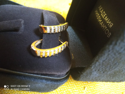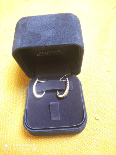 Серьги с 54 бриллиантами природными, 0.19 карат, огранка круг 17 граней, цвет 2, чистота 2, тип огранки А;