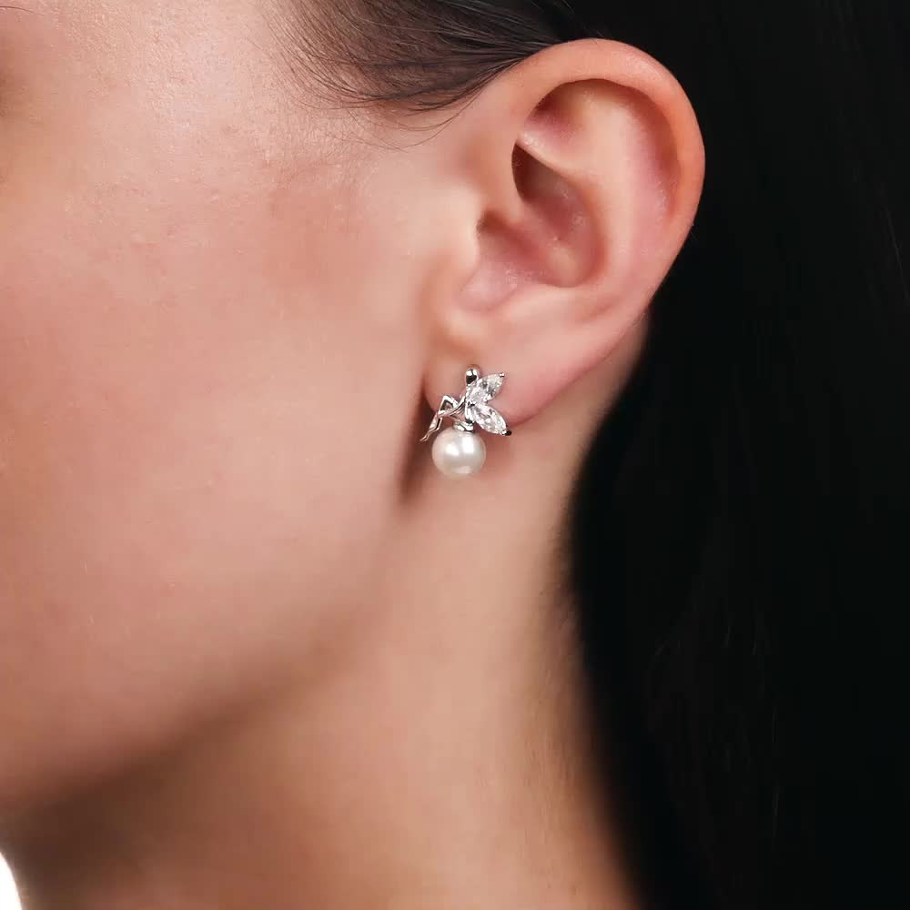 Серебряные серьги с жемчугом синтетическим и фианитами