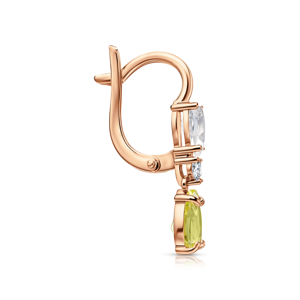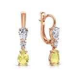 Золотые серьги с топазами природными, кварцами природными и горными хрусталями природными
