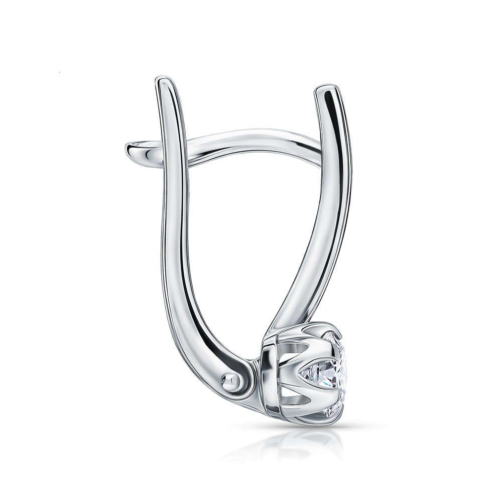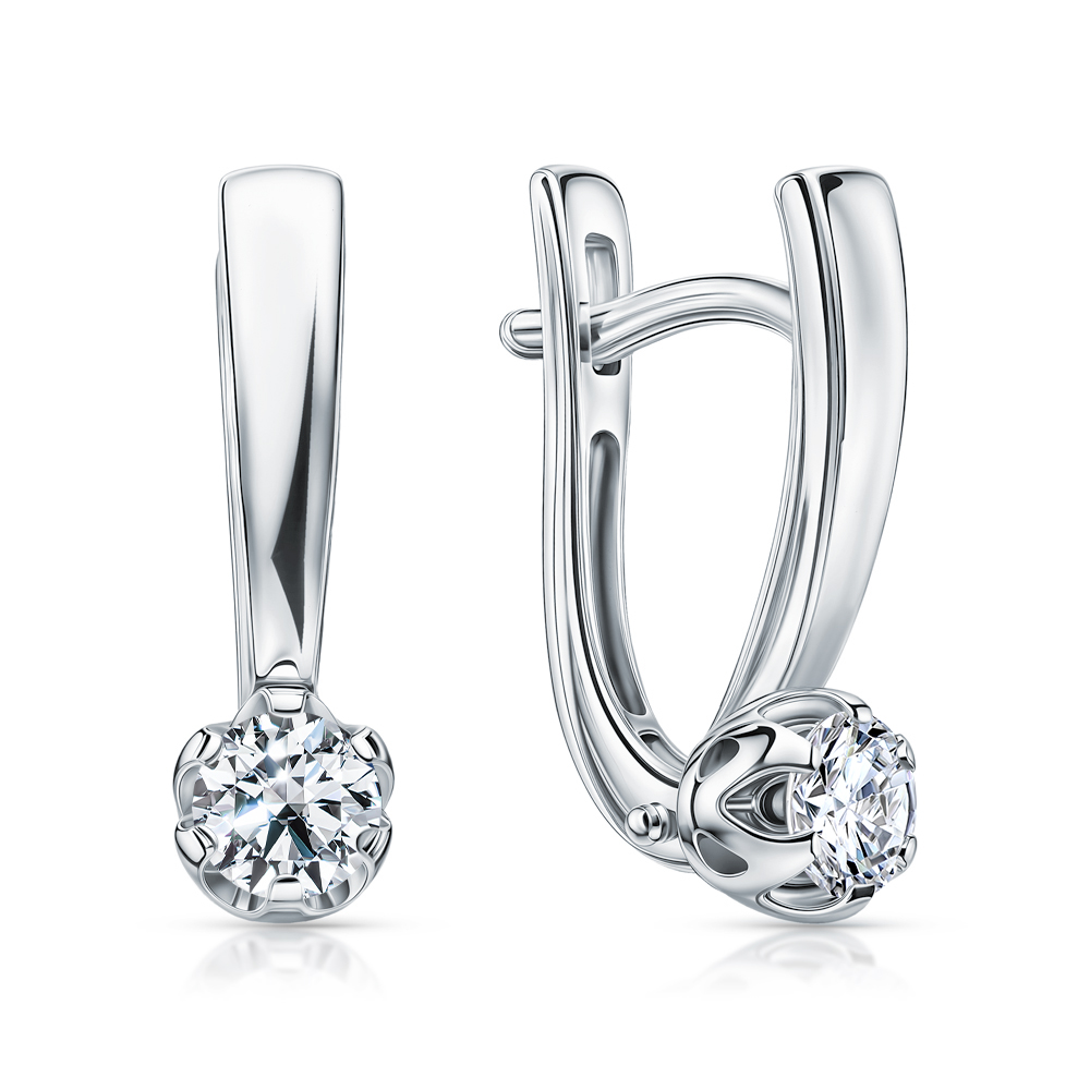 Серьги с 2 бриллиантами выращенными, 0.38 карат, огранка круг 57 граней, цвет 3, чистота 5, тип огранки А;