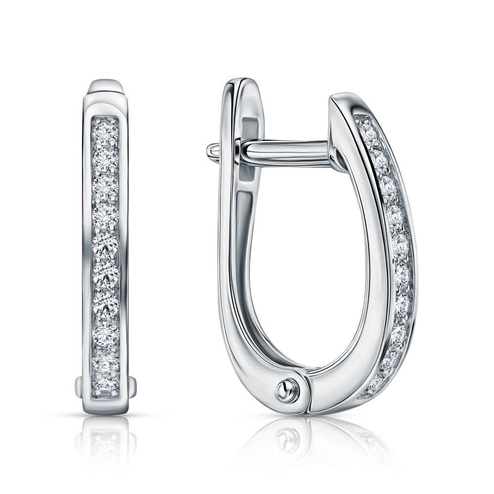 Серьги с 20 бриллиантами природными, 0.14 карат, огранка круг 57 граней, цвет 3, чистота 6, тип огранки А;