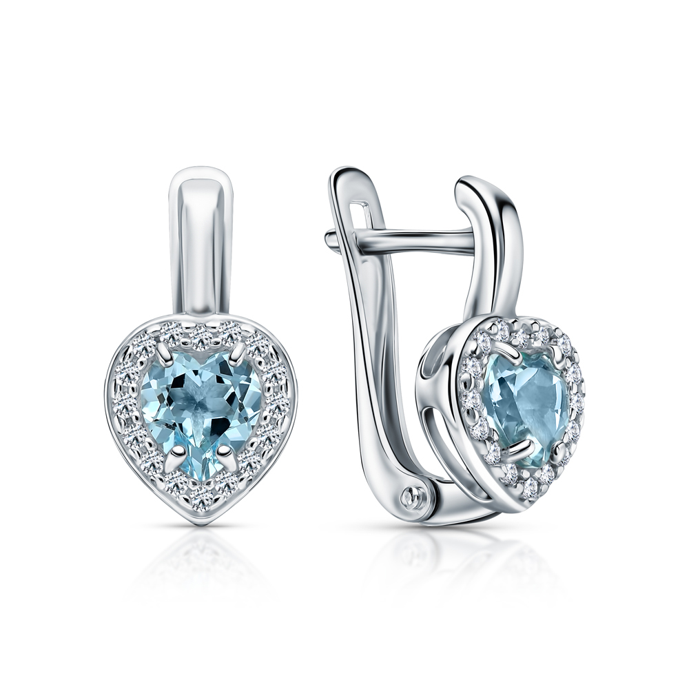 Серьги с 2 топазами скай природными, 0.97 карат;