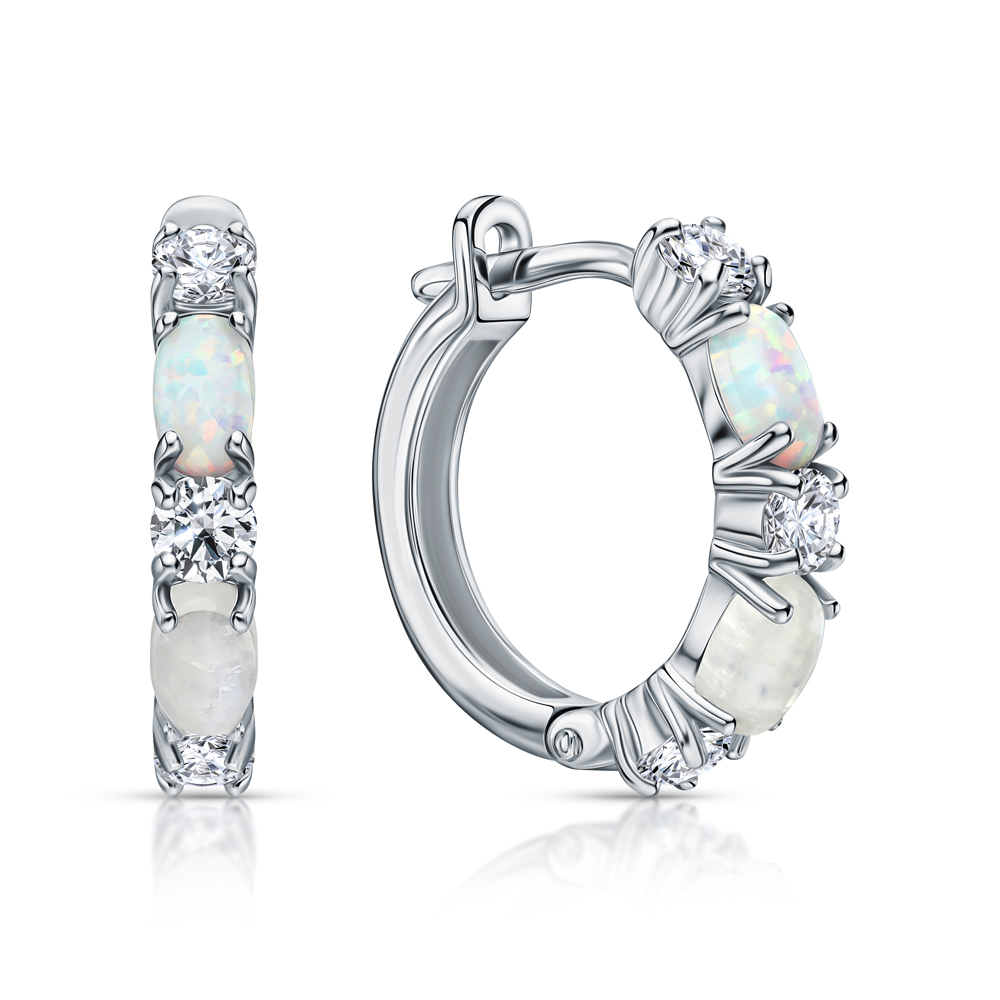 Серебряные серьги с фианитами, опалами и лунным камнем