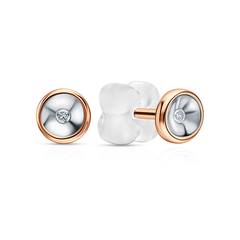 Серьги с 2 бриллиантами природными, 0.004 карат, огранка круг 17 граней, цвет 2, чистота 2, тип огранки А;