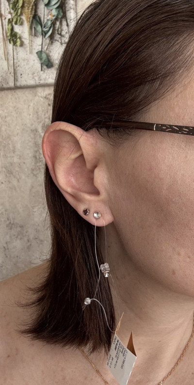 Серьги хоть и маленькие(диаметр примерно 4,5 мм) , но яркие и заметные. Невероятно легкие. Плотно прилегают к мочке уха, за счет того, что силиконовый замочек можно двигать без всяких ограничений и самому регулировать плотность прижатия. Подойдут на каждый день.