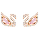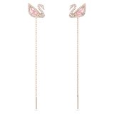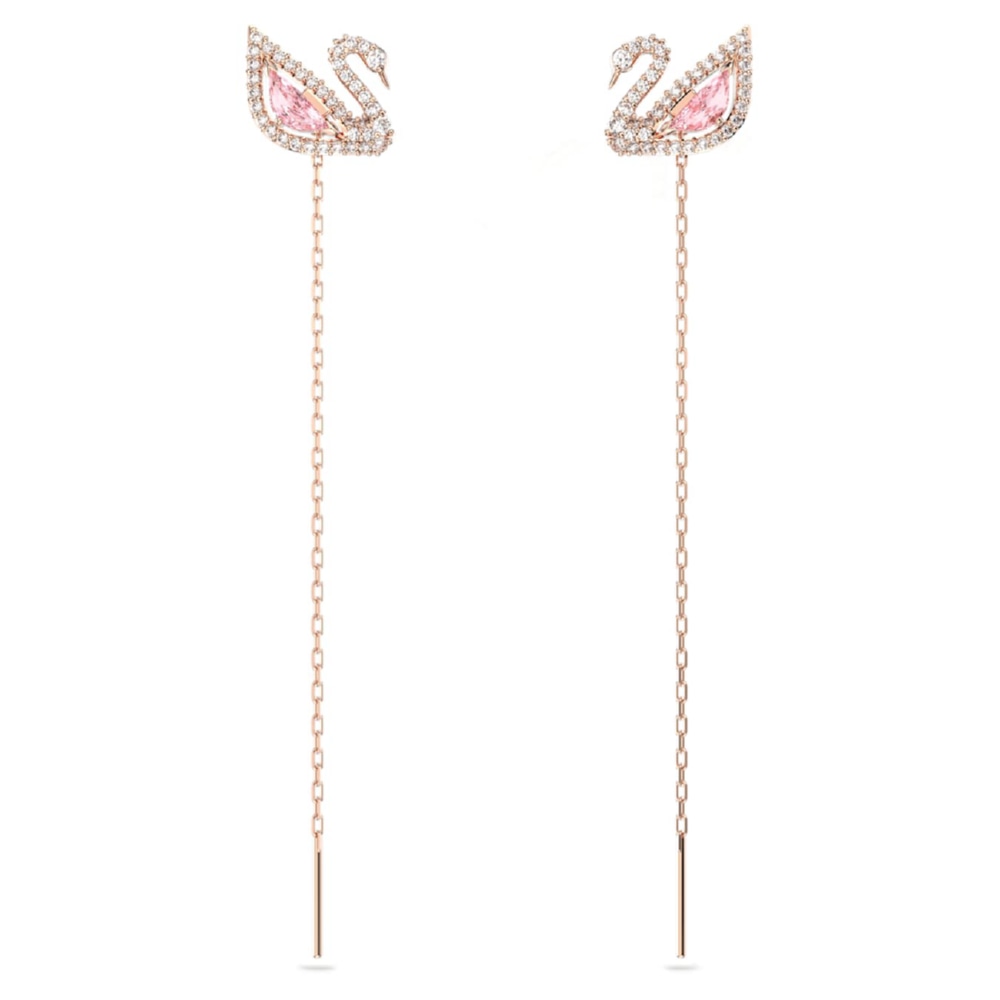 Серьги от бренда SWAROVSKI, выполненные из нержавеющей стали с гальваническим покрытием, украшены символом бренда Swarovski. Тело лебедя выполнено из розового кристалла Swarovski, окружённого прозрачными кристаллами Swarovski. Дополнены съемными подвесками-цепями. Винтовая застежка. Длина подвесок 8см. Гарантия 14 дней