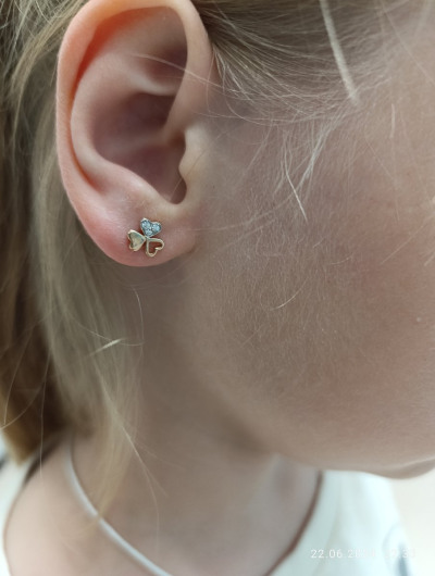 Покупала ребёнку на день рождения. Сережки очень нежные, милые. На детском ушке смотрятся отлично.