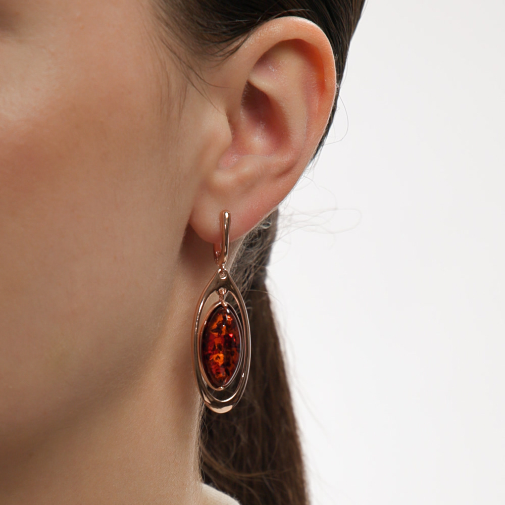 Серьги с 2 янтарями коричневыми природными;