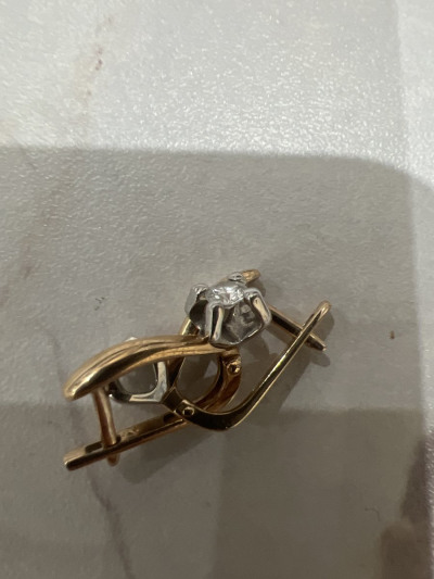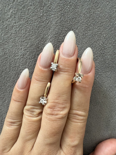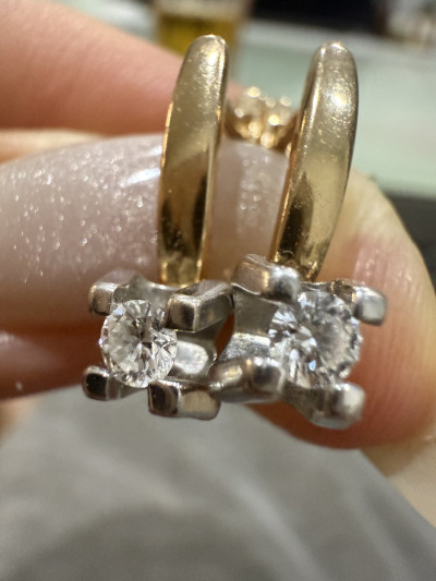Серьги с 2 бриллиантами природными, 0.25 карат, огранка круг 57 граней, цвет 3, чистота 6, тип огранки А;