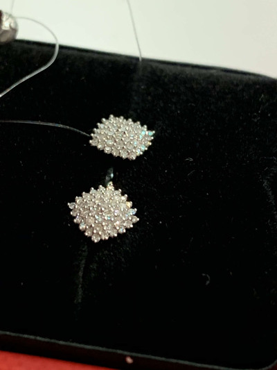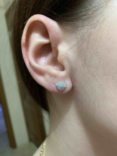 Прекрасные гвоздики с бриллиантами) Сверкают очень красиво, особенно при искусственном освещении. Надежные винтовые замки! Первые серьги, в которых могу даже спать, абсолютно не мешают!