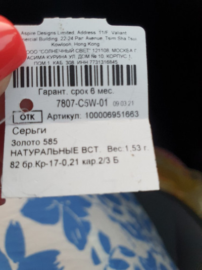 • В редких случаях характеристики украшения, дизайн бирки или упаковка могут иметь отличия от представленных на фото или в описании