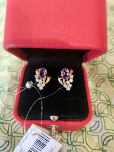 В редких случаях характеристики украшения или упаковка могут иметь отличия от представленных на фото или в описании.Серьги с 2 аметистами природными, тип огранки Б;