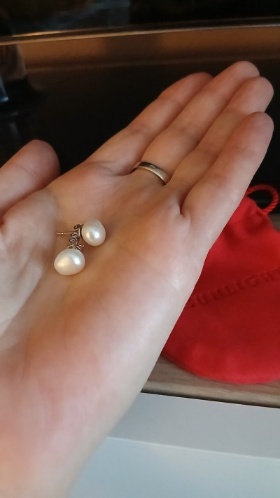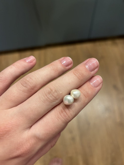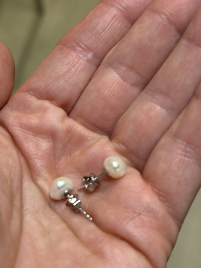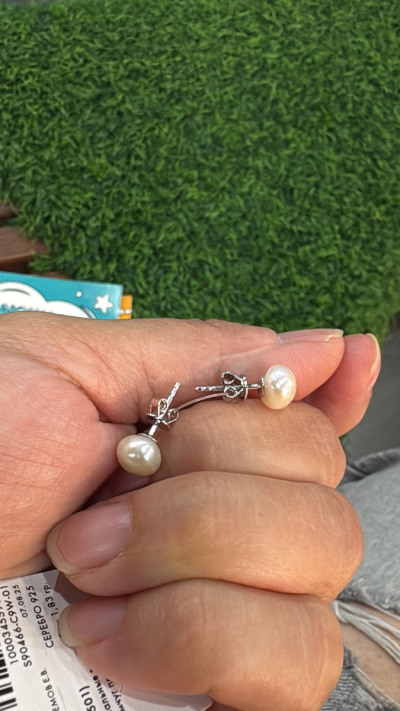 Не маленькие жемчужины неправильной формы, с бликами розового и зеленого цвета,, застежка бабочка,,,на конце шпильки зазубрины, чтобы сложно снималась застежка,,это очень продумано, заценила.