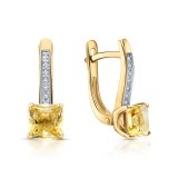 Золотые серьги с бриллиантами природными и цитринами природными