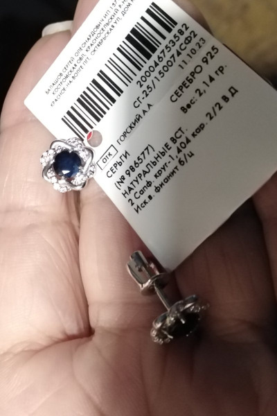 Серьги с 2 сапфирами, 1.29 карат, чистота 2;