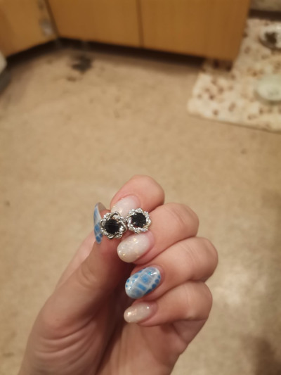 Камень яркий, синий. Размер камня 4,5*4,5,сама серьга в размере получается 8 мм