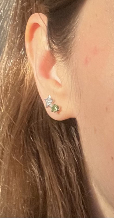 Камушек очень красивый на мой вкус. Сама сережка на широкую мочку. Мне немного великовата, но ничего, визуально не заметно.