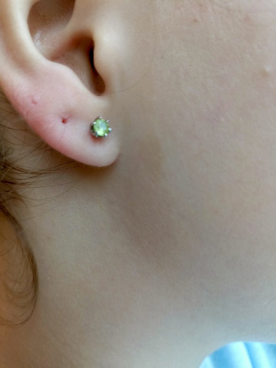 Камушек яркий, на свету переливается. Очень красивые пусеты для молодой девушки.