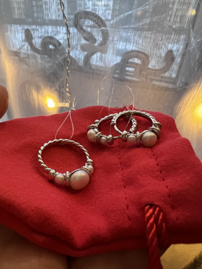 Замечательные сережки, смотрятся очень нежно, украшены мелким и крупным жемчугом, форма в виде колец, смотрятся не обычно, не смогла устоять, пришлась взять. К покупке рекомендую!