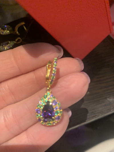 Изделие очень красивое, лёгкие серьги, цвета-огонь, давно хотела такое сочетание-сиреневого и зелёного. Только цвет позолоты конечно убил, ну за такую красоту простим. Рекомендую.