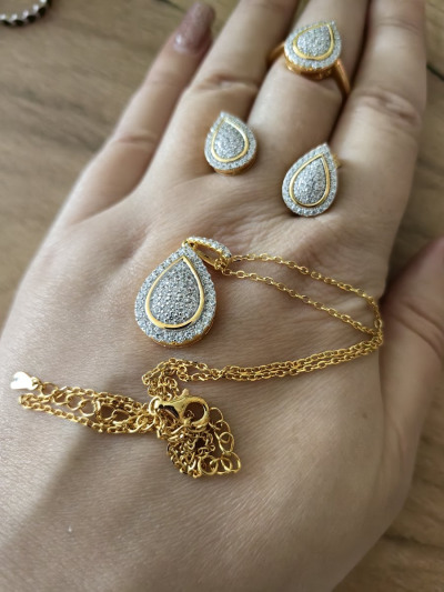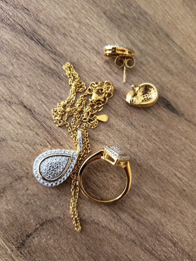 Яркий желто-оранжевый цвет металла дешевит этот комплект украшений. Возврат делать не буду, но я не довольна. На фото продавца цвет более благородный.