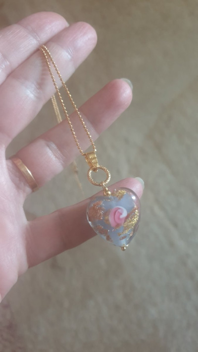 Подарок на годовщину свадьбы от мужа сердце подвеска с цепочкой из муранского стекла напоминание о Венеции )