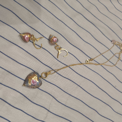 Крупное, позолоченное сердечко под розовое золото, в комплекте с серьгами супер!