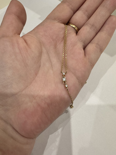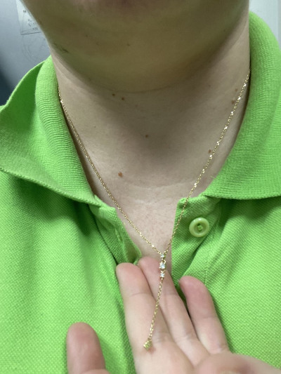 На картинке и вживую выглядит превосходно. Однако, поскольку нижний фианит очень легкий, то есть не выполняет функцию утяжелителя, свисающая часть постоянно перекручивается вокруг основной цепи. Приходится очень часто поправлять ...