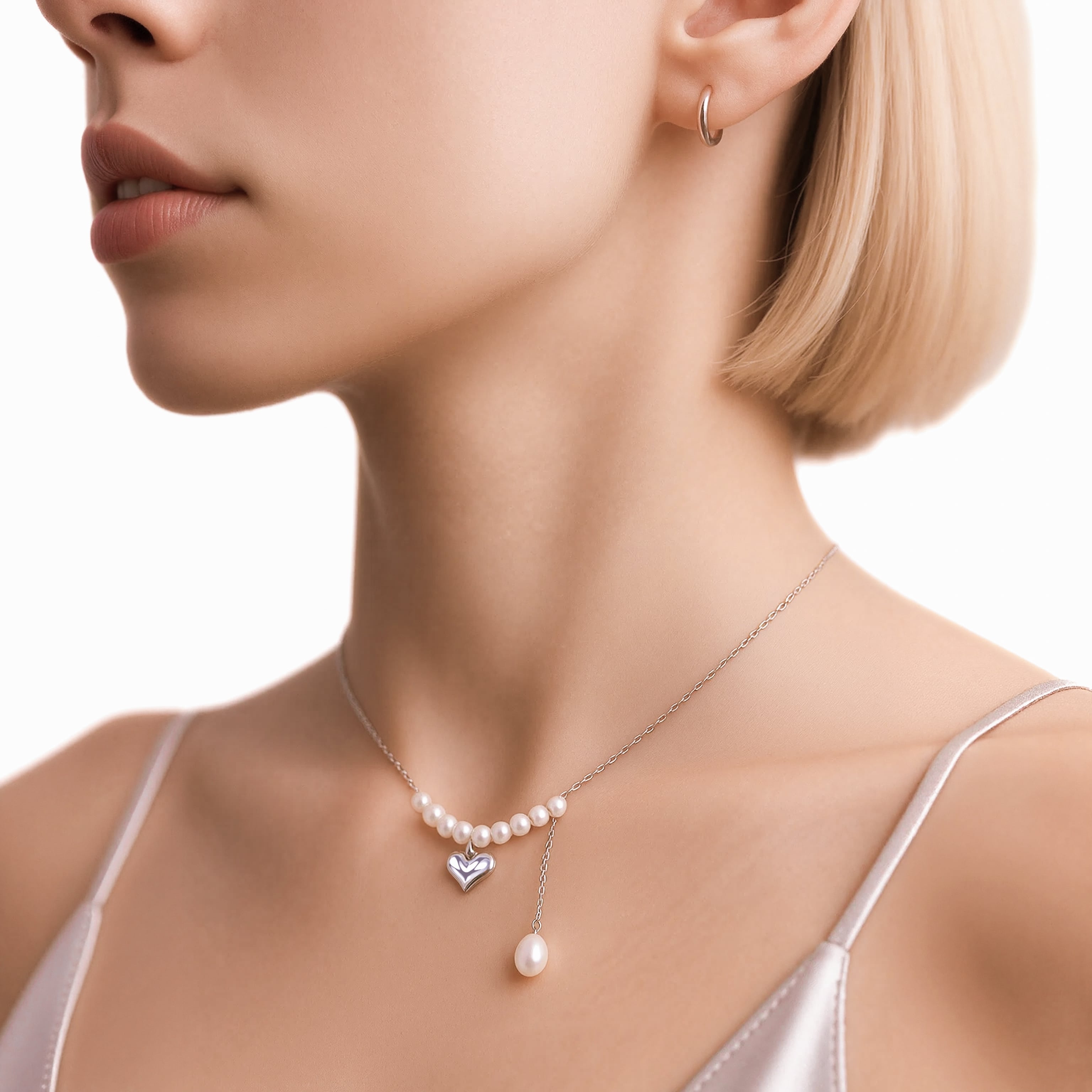 Серебряное шейное украшение с жемчугом