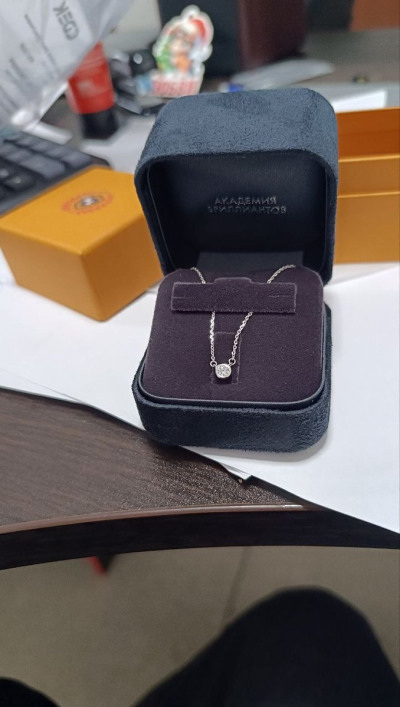 • Шейное укр. с 1 бриллиантом выращенным, 0.16 карат, огранка круг 57 граней, цвет 3, чистота 5;