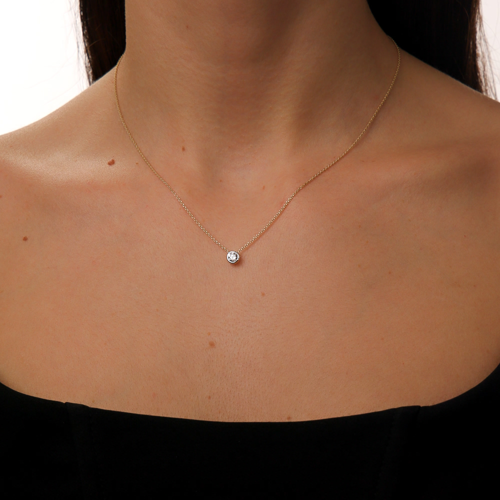 Шейное укр. с 1 бриллиантом выращенным, 0.35 карат, огранка круг 57 граней, цвет 4, чистота 5, тип огранки А;