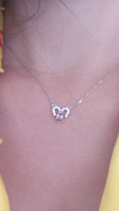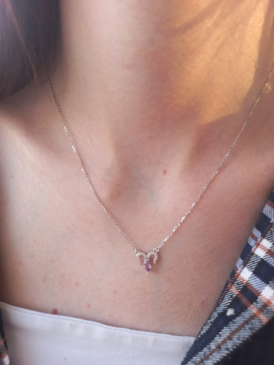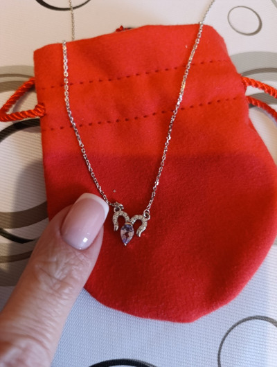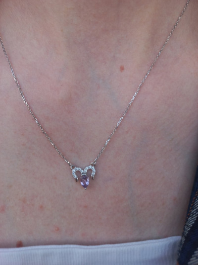 Серебряное шейное украшение с фианитами и аметистом "Овен"