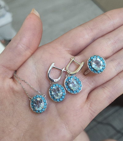 - ВставкаТопаз скай природный, Бирюза синтетическая