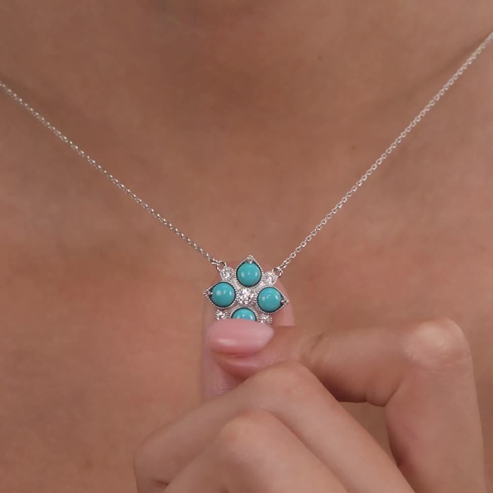 Серебряное шейное украшение с фианитами и бирюзой