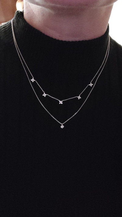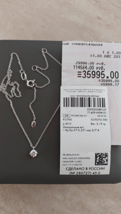 Легкое, воздушное с прекрасным бриллиантом в 0.25 карат (проверен у геммолога, оценка по пропорциям огранки хорошая, примерно на 4 из 5). При увеличении включения очень мелкие и светлые, без черных точек. Бриллиант закреплён с подсветкой по бокам и внизу. Почти плоская при виде с боку закрепка с петелькой дает полную гарантию не перекручиваться и не заваливаться на бок камню. Горит огнем теперь уже мой "светлячок" 💎💎💎