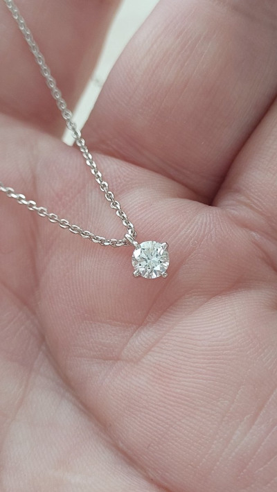Колье с 1 бриллиантом природным, 0.24 карат, огранка круг 57 граней, цвет 4, чистота 7, тип огранки А;