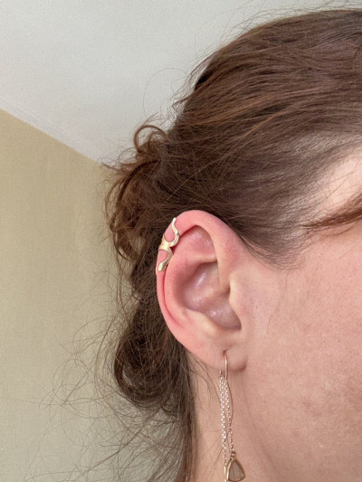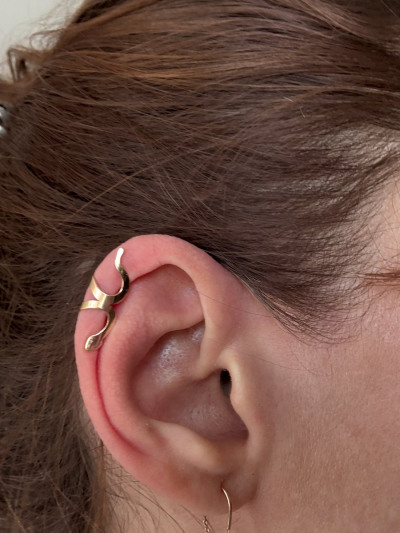 Давно хотела кафф, долго не могла подобрать по размеру. Этот сел хорошо, можно носить как сверху уха, так и посередине держится. Рекомендую
