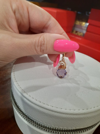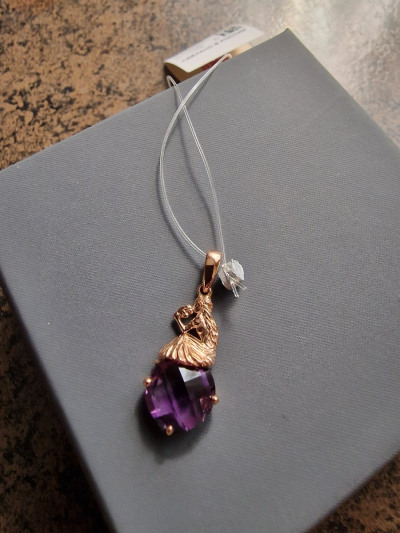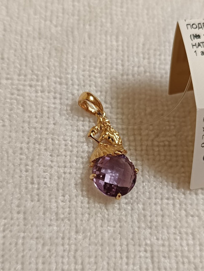 В редких случаях характеристики украшения или упаковка могут иметь отличия от представленных на фото или в описании.Подвеска с 1 аметистом природным, 3.24 карат;