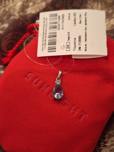 Красивая подвеска🌟 Танзалит в зависимости от освещения меняет цвет, от прозрачно голубого до светло фиалетового, фианит сверкает🌟✨️🌟