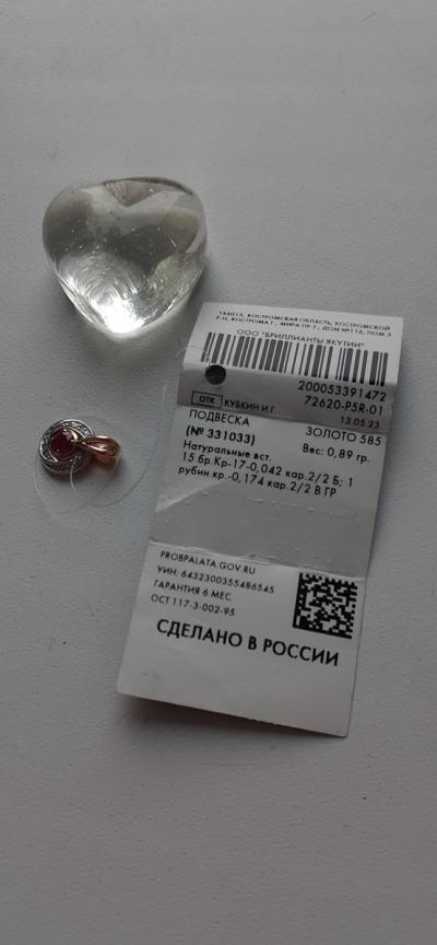 Искала подвеску с натуральным камнем рубином.Надеюсь,на помощь камня.Красивая подвеска с бриллиантами и рубином.Хорошо подходит на браслет.Советую.