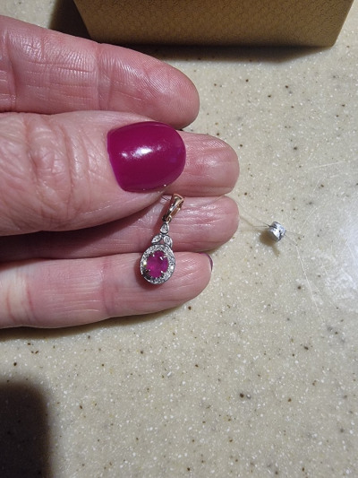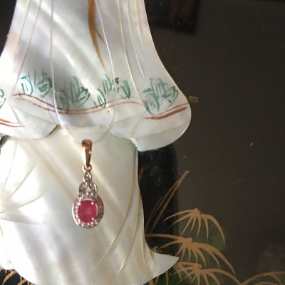 Насыщенный рубин, в обрамлении бриллиантов делает эту подвеску удивительно нежной и в тоже время яркой и заметной. Рекомендую!