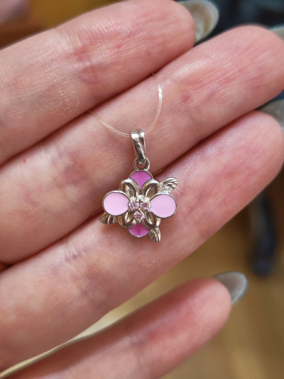 Нежная серебряная подвеска в форме нежного цветочка с отделкой пастельной эмалью розовых оттенков и сверкающими фианитами. Аккуратная миниатюрная модель подвески порадует как юных модниц, так и солидных дам и станет любимым украшением в коллекции. Для маленьких принцесс в комплект можно подобрать кольцо или сережки. Серебряные украшения всегда остаются в тренде и будут приятным и желанным подарком.